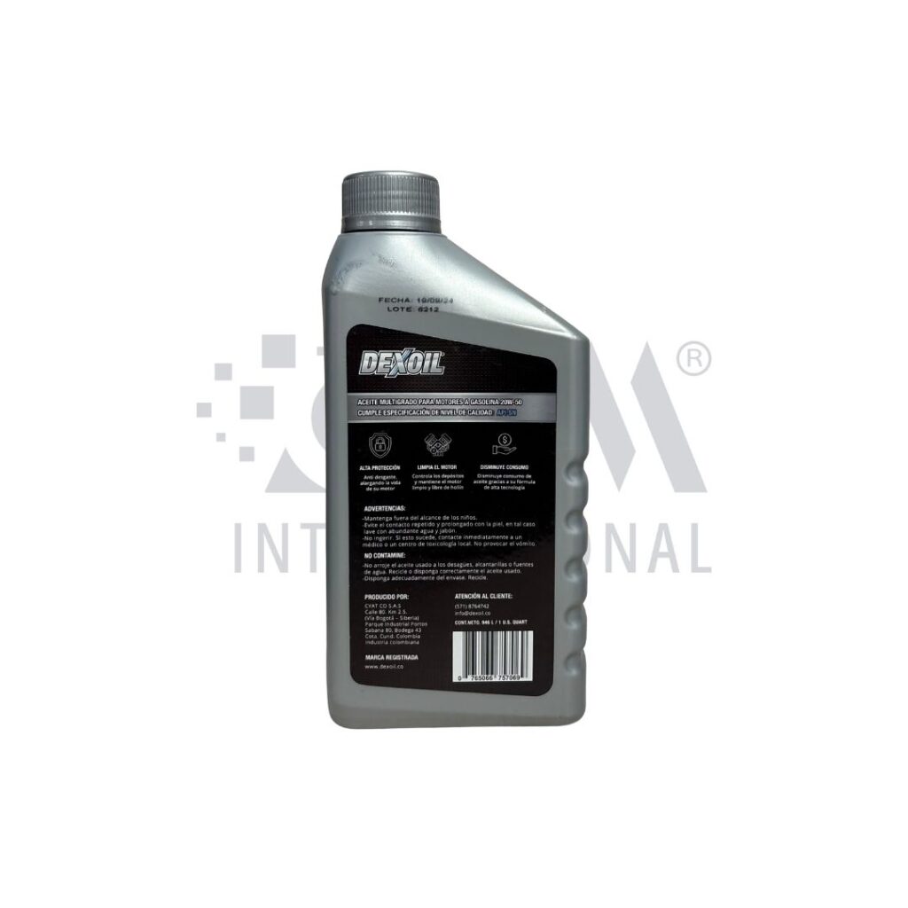 Aceite Dexoil 20W-50 API SL: máxima protección y sellado para motores a gasolina de alto kilometraje y trabajo exigente.
