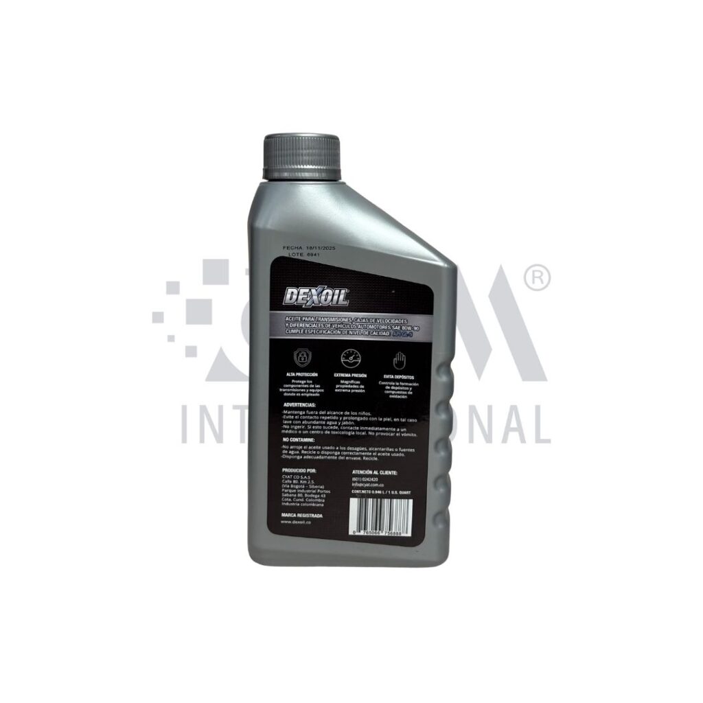 Aceite de transmisión DEXOIL 80W-90 API GL-5, formulado para ofrecer máxima protección a engranajes, diferenciales