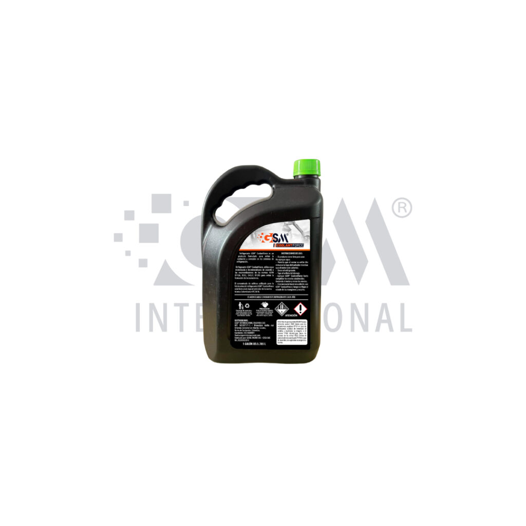 Refrigerante corriente GSM COOLANTFORCE Verde en presentación de 1 galón; protege el motor contra sobrecalentamiento, corrosión y formación de depósitos, asegurando un sistema de enfriamiento confiable.