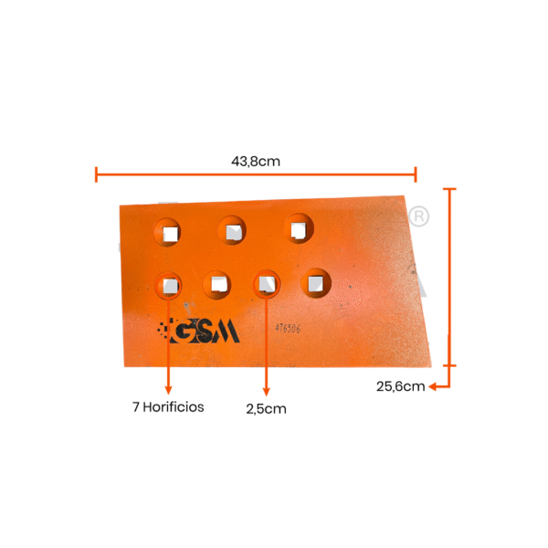Con dimensiones 25,6 x 43,8 pulgadas y un espesor de 1”, esta cuchilla garantiza una excelente capacidad de corte y una larga vida útil. Su configuración de 7 orificios (7H) permite una instalación segura y un ajuste preciso al equipo.