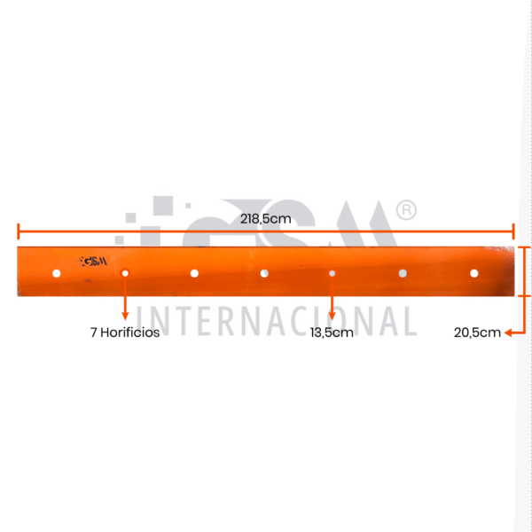 Cuenta con un espesor de 5/8” y dimensiones de 20,5 x 218,5 pulgadas, proporcionando una amplia cobertura de trabajo y un corte uniforme. Su diseño con 7 orificios (7H) permite una instalación firme y segura en el equipo.