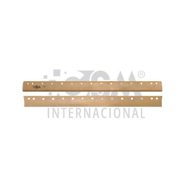 Cuenta con 13 perforaciones de 3/4″ para montaje con pernos 3/4″T, lo que asegura un acople firme y confiable con la hoja base de la motoniveladora. Su mayor ancho (20 cm) brinda mayor capacidad de corte y durabilidad frente a modelos estándar de 15,2 cm, siendo ideal para trabajos de mantenimiento de vías, nivelación de terrenos, minería y construcción pesada.