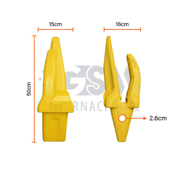 Su construcción en acero aleado de alta resistencia con tratamiento térmico garantiza desempeño superior frente a la abrasión, el impacto y los esfuerzos extremos en minería, canteras y construcción pesada. El ángulo de 90° permite una mejor alineación en cortes de borde y excavaciones laterales, optimizando la eficiencia del equipo y prolongando la vida útil tanto del balde como de los dientes.