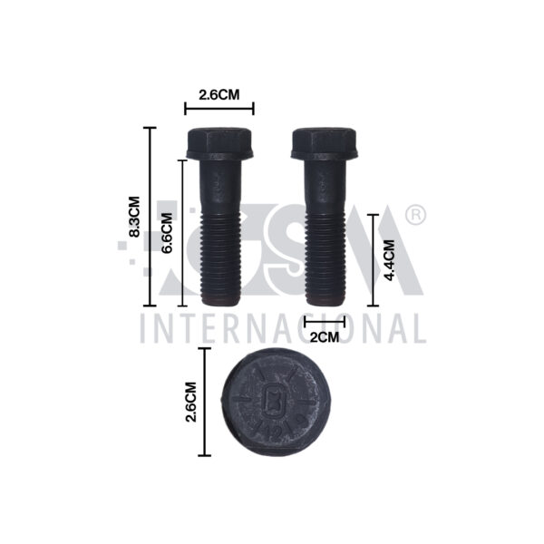 El Tornillo de rueda guía para excavadoras Caterpillar 330 y 336, con medidas 3/4” x 20mm x 68mm x 27mm copa, es un componente esencial que asegura la fijación firme de la rueda guía al bastidor.