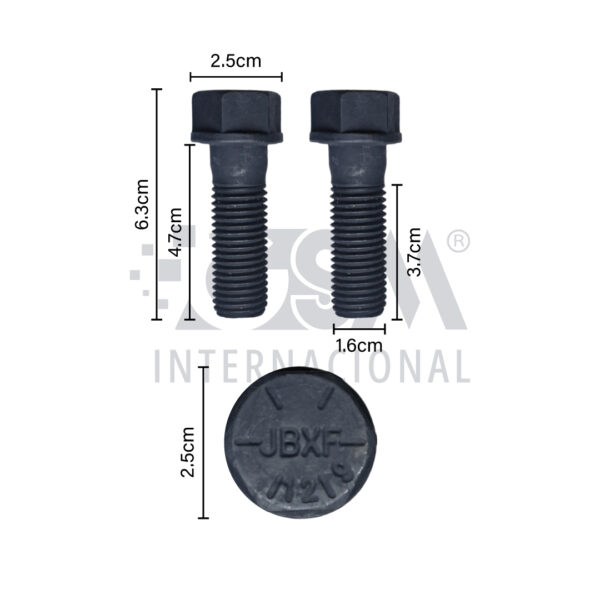 El Tornillo de rueda guía para excavadoras Hitachi ZX120 / ZX130 y Caterpillar 312 / 313, con medidas 5/8” x 16mm x 70mm x 22mm copa, está diseñado para garantizar una fijación firme y segura de la rueda guía al bastidor del tren de rodaje.